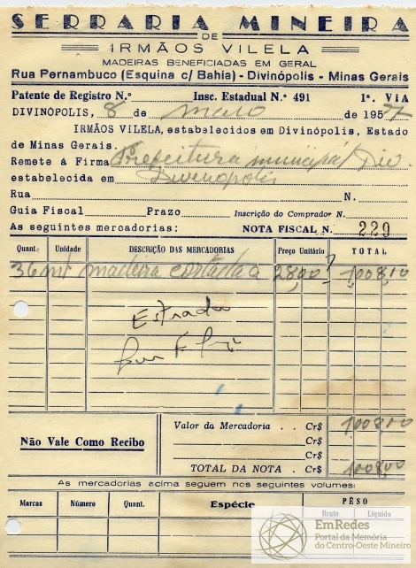 FICA O SR. CHEFE DO SERVIÇO DE FAZENDA AUTORIZADO A PAGAR AO SR.IRMÃOS VILELA A QUANTIA DE DOIS MIL, QUINHENTOS DEZOITO CRUZEIROS PROVENIENTE DE MADEIRA FORNECIDA