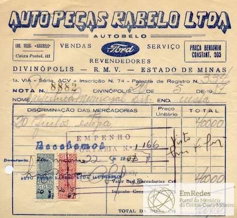 FICA O SR. CHEFE DO SERVIÇO DE FAZENDA AUTORIZADO A PAGAR AO SR.AUTO PEÇAS RABELO LTDA. A QUANTIA DE QUATROCENTOS CRUZEIROS PROVENIENTE DE ESTOPA