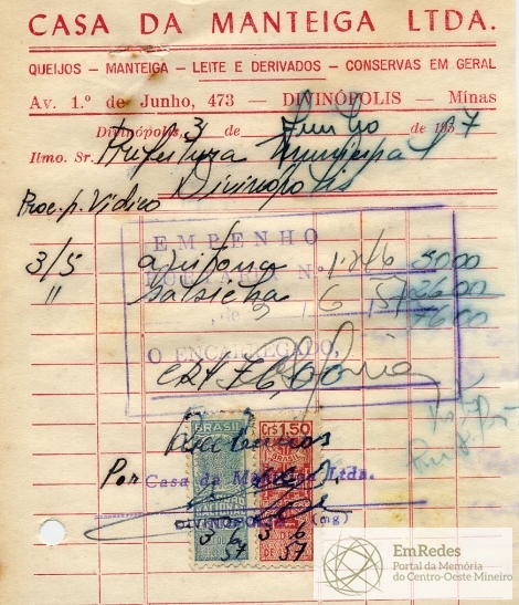 PREFEITURA MUNICIPAL DE DIVINÓPOLIS, 03 DE JUNHO DE 1957