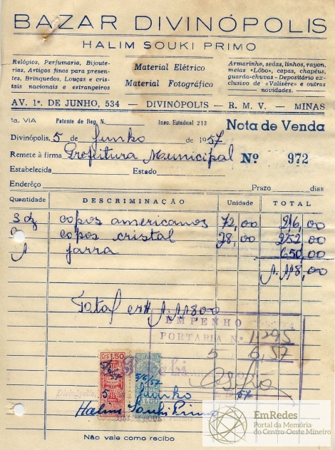 PREFEITURA MUNICIPAL DE DIVINÓPOLIS, 05 DE JUNHO DE 1957.