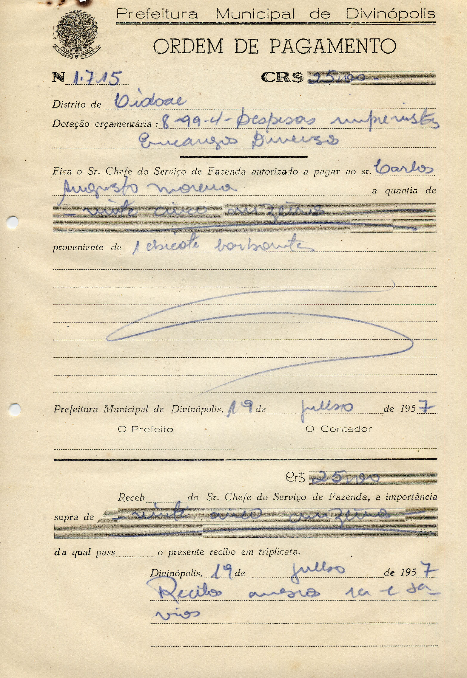 PREFEITURA MUNICIPAL DE DIVINÓPOLIS, 19 DE JULHO DE 1957