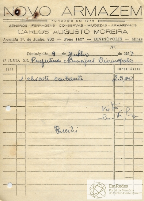 PREFEITURA MUNICIPAL DE DIVINÓPOLIS, 19 DE JULHO DE 1957