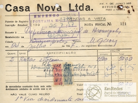 PREFEITURA MUNICIPAL DE DIVINÓPOLIS, 25 DE JULHO DE 1957.