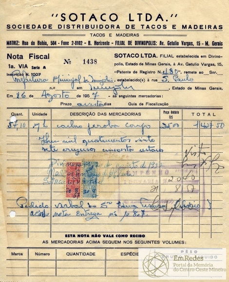 PREFEITURA MUNICIPAL DE DIVINÓPOLIS, 21 DE AGOSTO DE 1957.