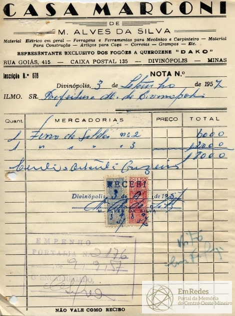 DIVINÓPOLIS, 09 DE SETEMBRO DE 1957.