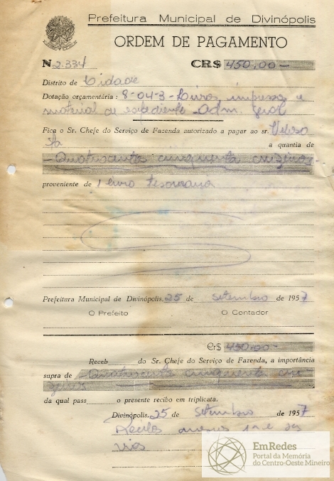 PREFEITURA MUNICIPAL DE DIVINÓPOLIS, 25 DE SETEMBRO DE 1957.