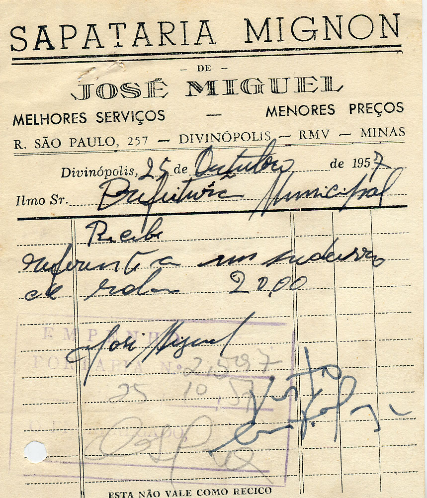 DIVINÓPOLIS, 25 DE OUTUBRO DE 1957.