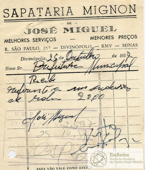 PREFEITURA MUNICIPAL DE DIVINÓPOLIS, 25 DE OUTUBRO DE 1957.