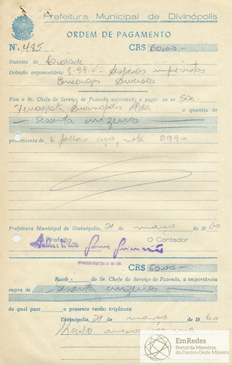PREFEITURA MUNICIPAL DE DIVINÓPOLIS, 21 DE MARÇO DE 1960.
