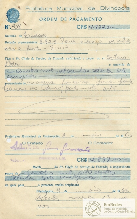 PREFEITURA MUNICIPAL DE DIVINÓPOLIS, 03 DE MAIO DE 1960