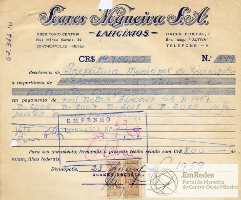 PREFEITURA MUNICIPAL DE DIVINÓPOLIS, 23 DE JANEIRO DE 1959.