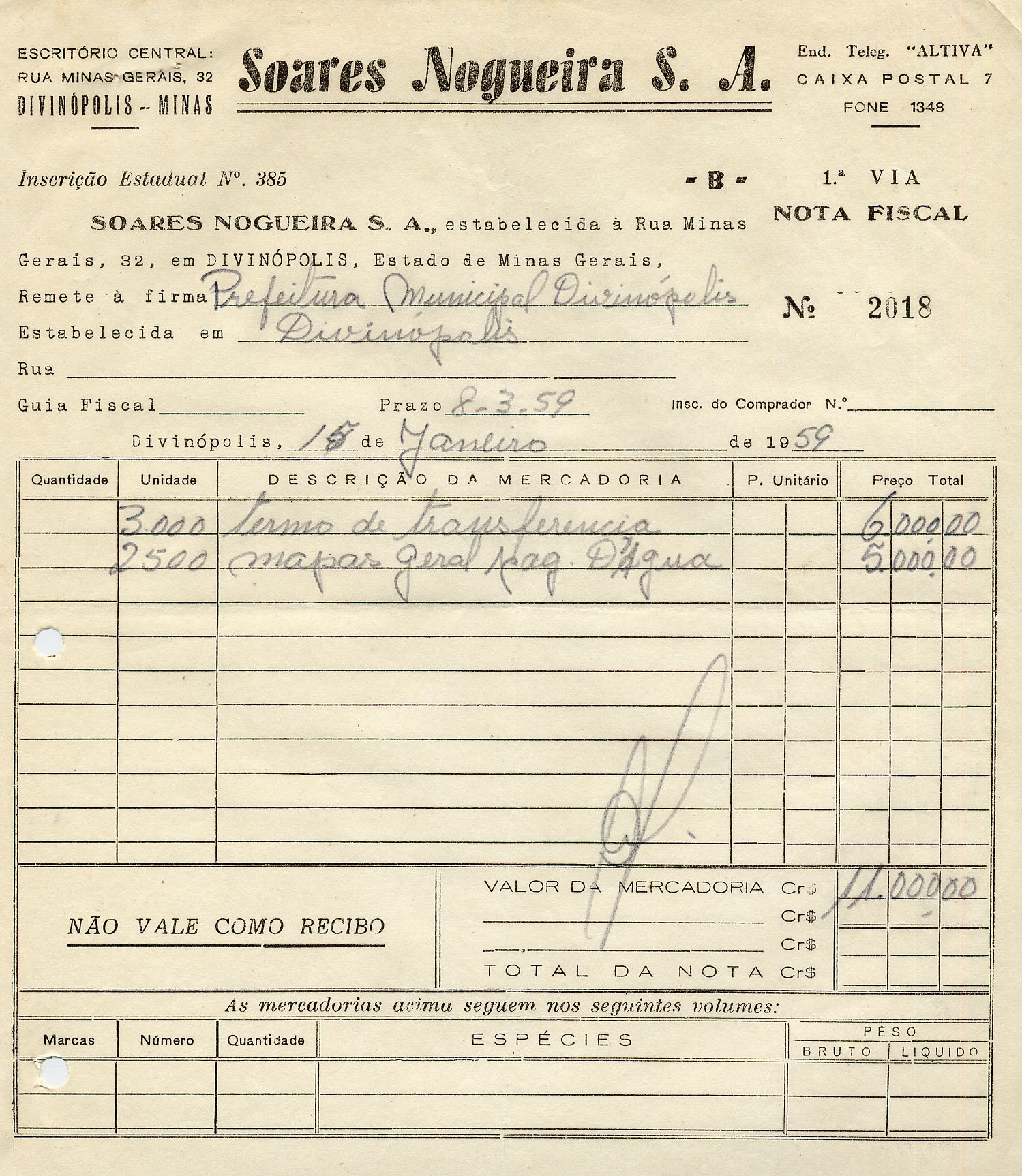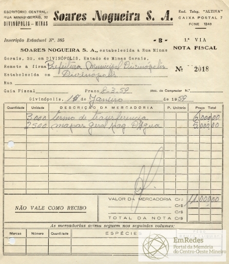 PREFEITURA MUNICIPAL DE DIVINÓPOLIS, 23 DE JANEIRO DE 1959.