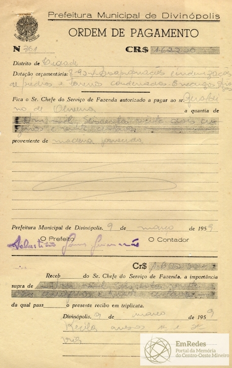 PREFEITURA MUNICIPAL DE DIVINÓPOLIS, 09 DE MARÇO DE 1959.