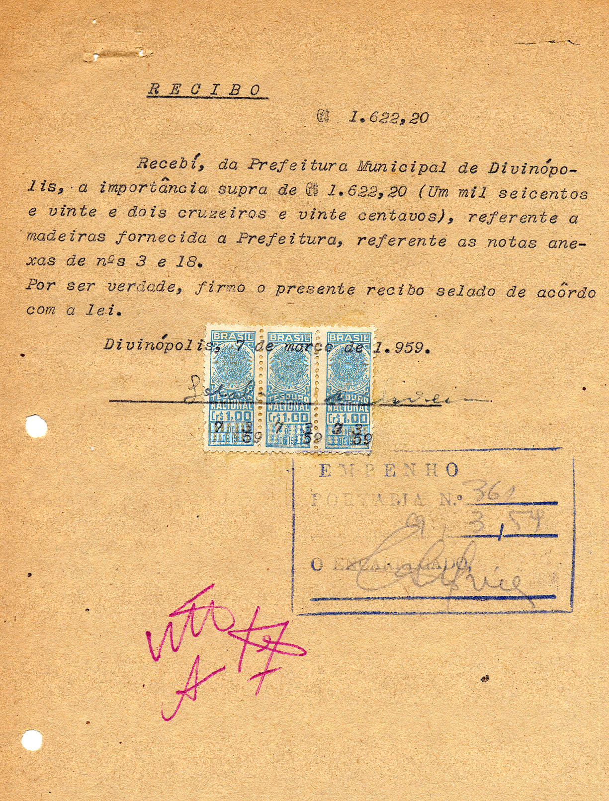 PREFEITURA MUNICIPAL DE DIVINÓPOLIS, 09 DE MARÇO DE 1959.