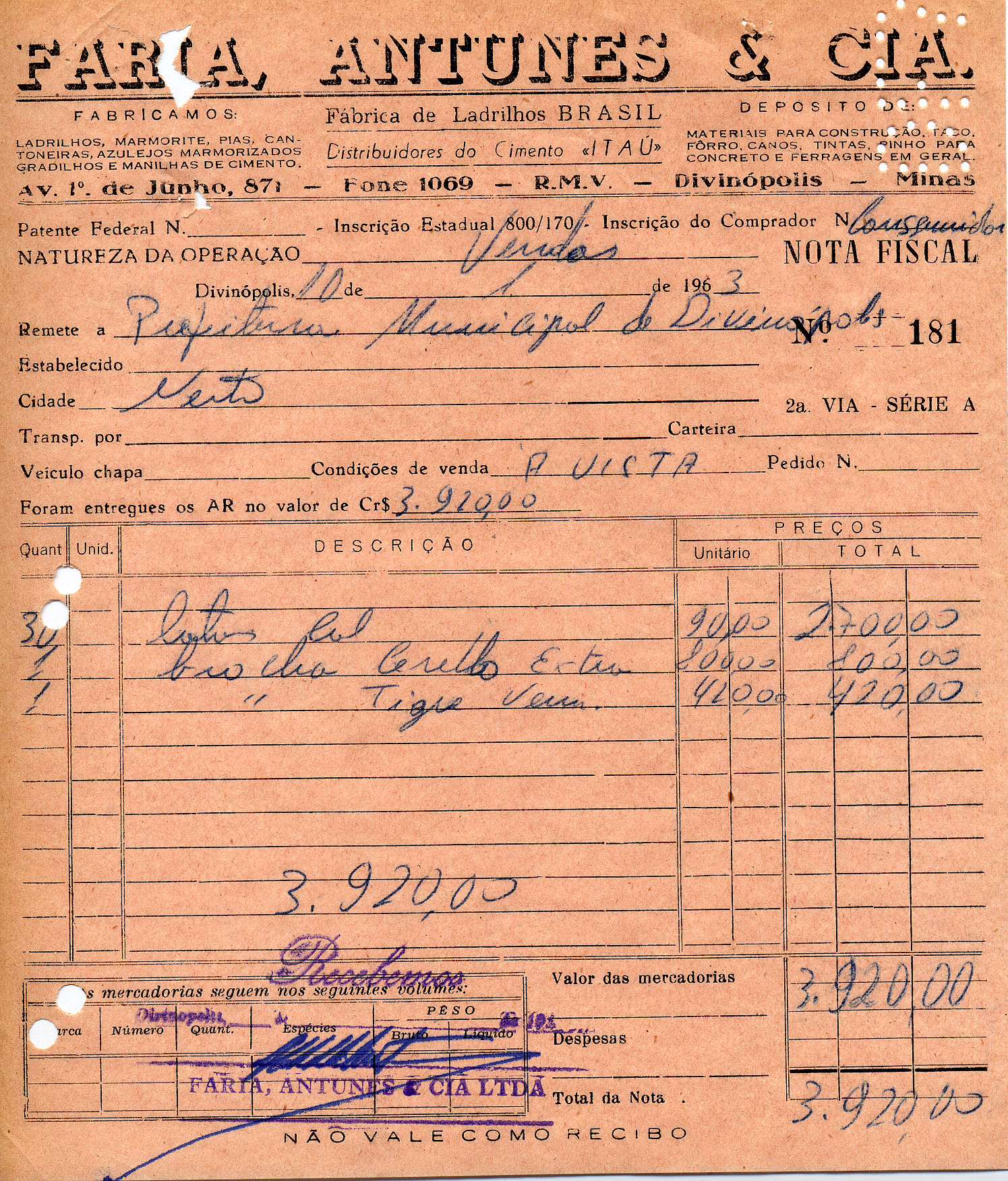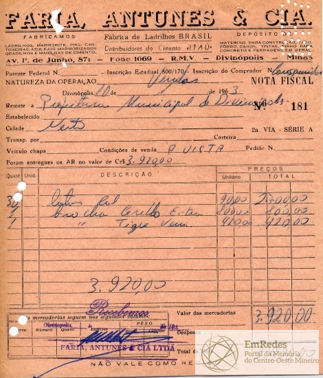 PREFEITURA MUNICIPAL DE DIVINÓPOLIS, 23 DE JANEIRO DE 1963