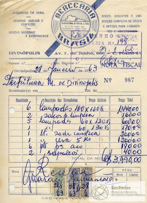PREFEITURA MUNICIPAL DE DIVINÓPOLIS, 29 DE JANEIRO DE 1963.