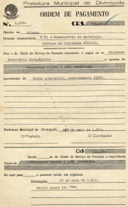 FICA O SR. CHEFE DE FAZENDA AUTORIZADO A PAGAR AO SR. EXPRESSO RODOVIÁRIO DIVINÓPOLIS A QUANTIA DE TREZENTOS E TRINTA E TRÊS CRUZEIROS PROVENIENTE DE FRETE S/ MATERIAL.