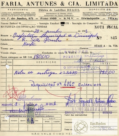 PREFEITURA MUNICIPAL DE DIVINÓPOLIS, 16 DE JULHO DE 1963.