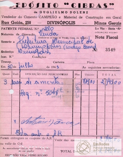 PREFEITURA MUNICIPAL DE DIVINÓPOLIS, 26 DE AGOSTO DE 1963.