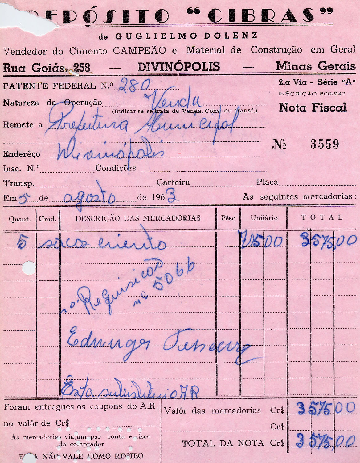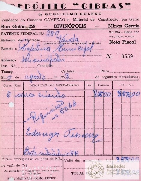 PREFEITURA MUNICIPAL DE DIVINÓPOLIS, 26 DE AGOSTO DE 1963.