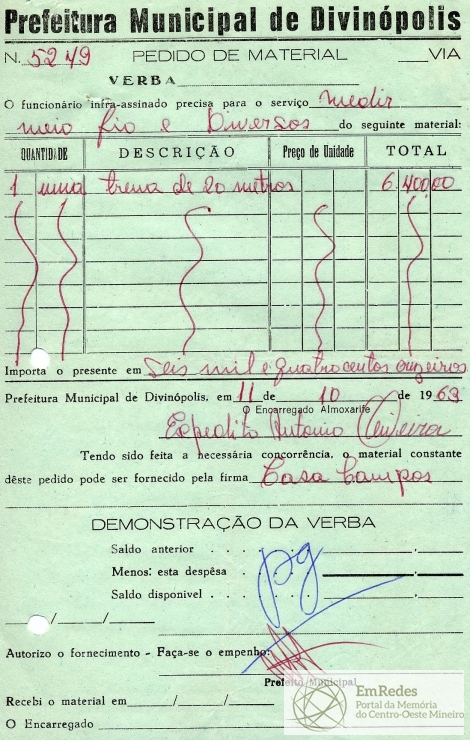 PREFEITURA MUNICIPAL DE DIVINÓPOLIS, 15 DE OUTUBRO DE 1963.