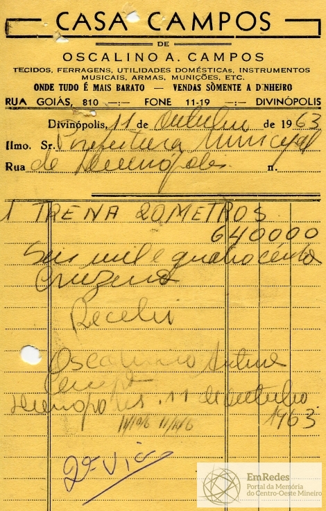 PREFEITURA MUNICIPAL DE DIVINÓPOLIS, 15 DE OUTUBRO DE 1963.
