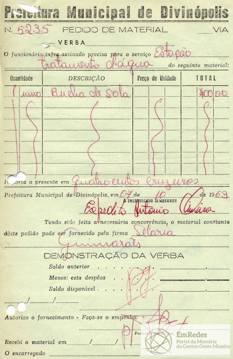 PREFEITURA MUNICIPAL DE DIVINÓPOLIS, 18 DE OUTUBRO DE 1963.