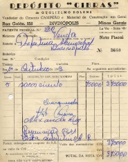 RECEBI DO SR. CHEFE DO SERVIÇO DE FAZENDA, A IMPORTÂNCIA SUPRA DE NOVE MIL CRUZEIROS DA QUAL PASSO O PRESENTE RECIBO EM TRIPLICATA.