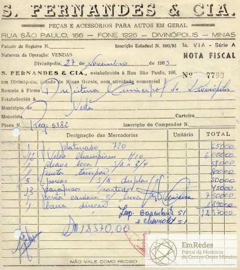 PREFEITURA MUNICIAPL DE DIVINÓPOLIS, 31 DE DEZEMBRO DE 1963.