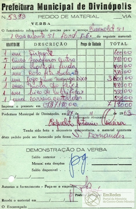 PREFEITURA MUNICIAPL DE DIVINÓPOLIS, 31 DE DEZEMBRO DE 1963.