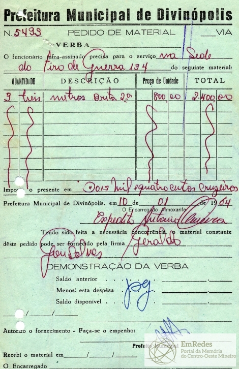 PREFEITURA MUNICIPAL DE DIVINÓPOLIS, 27 DE JANEIRO DE 1964.