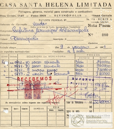 PREFEITURA MUNICIPAL DE DIVINÓPOLIS, 04 DE FEVEREIRO DE 1964.