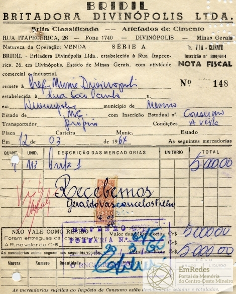PREFEITURA MUNICIPAL DE DIVINÓPOLIS, 20 DE MARÇO DE 1964.