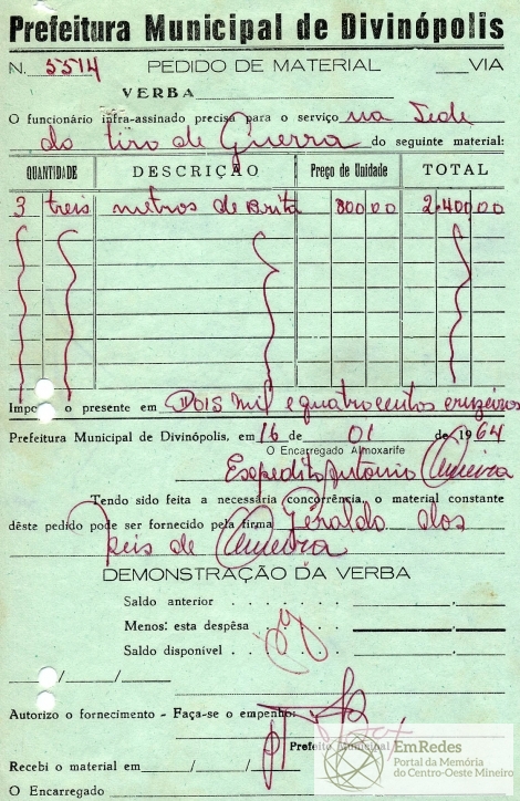 PREFEITURA MUNICIPAL DE DIVINÓPOLIS, 27 DE JANEIRO DE 1964.
