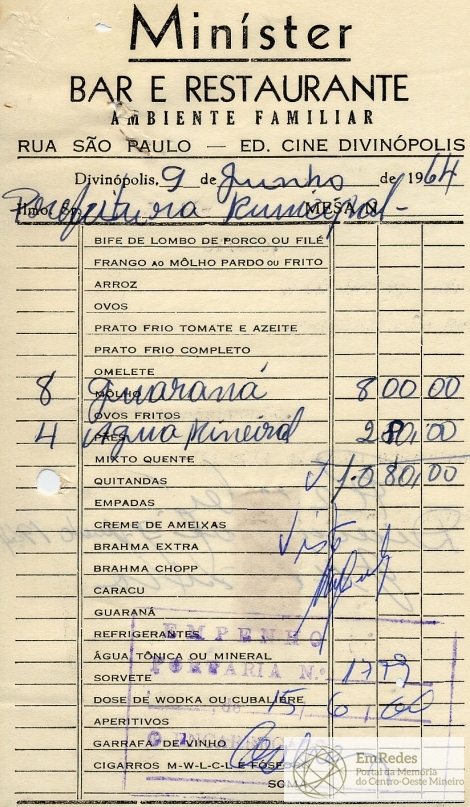 PREFEITURA MUNICIPAL DE DIVINÓPOLIS, 15 DE JUNHO DE 1964.