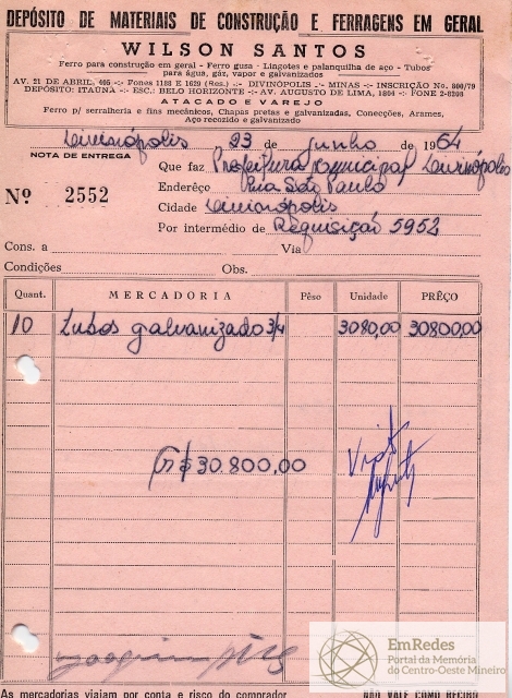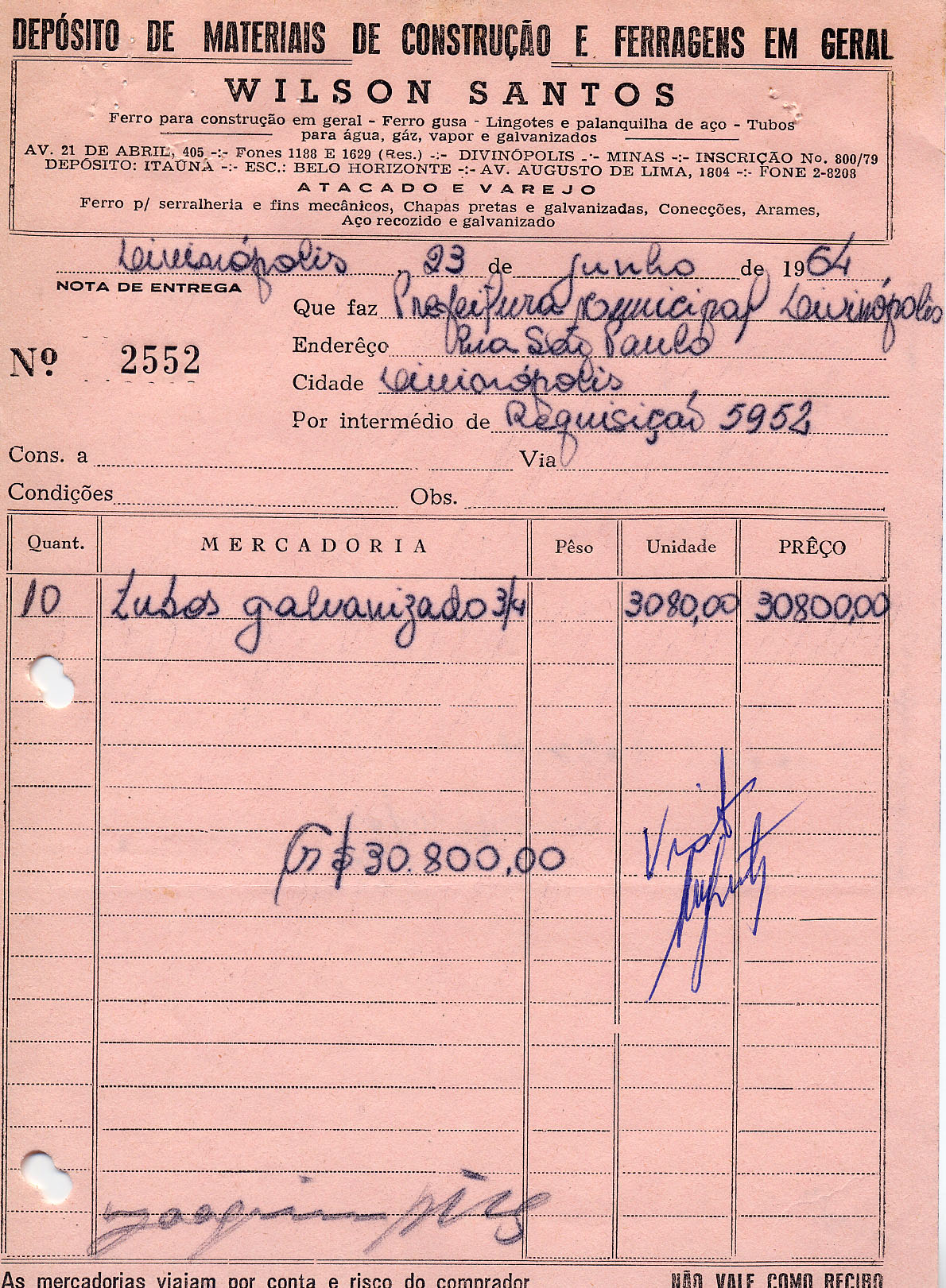 PREFEITURA MUNICIPAL DE DIVINÓPOLIS, 18 DE AGOSTO DE 1964.