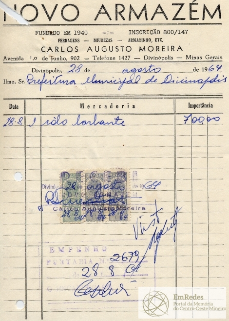 PREFEITURA MUNICIPAL DE DIVINÓPOLIS, 28 DE AGOSTO DE 1964.