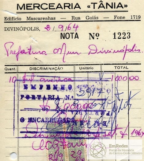 PREFEITURA MUNICIPAL DE DIVINÓPOLIS, 08 DE SETEMBRO DE 1964.