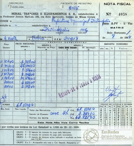 PREFEITURA MUNICIPAL DE DIVINÓPOLIS, 09 DE SETEMBRO DE 1964.