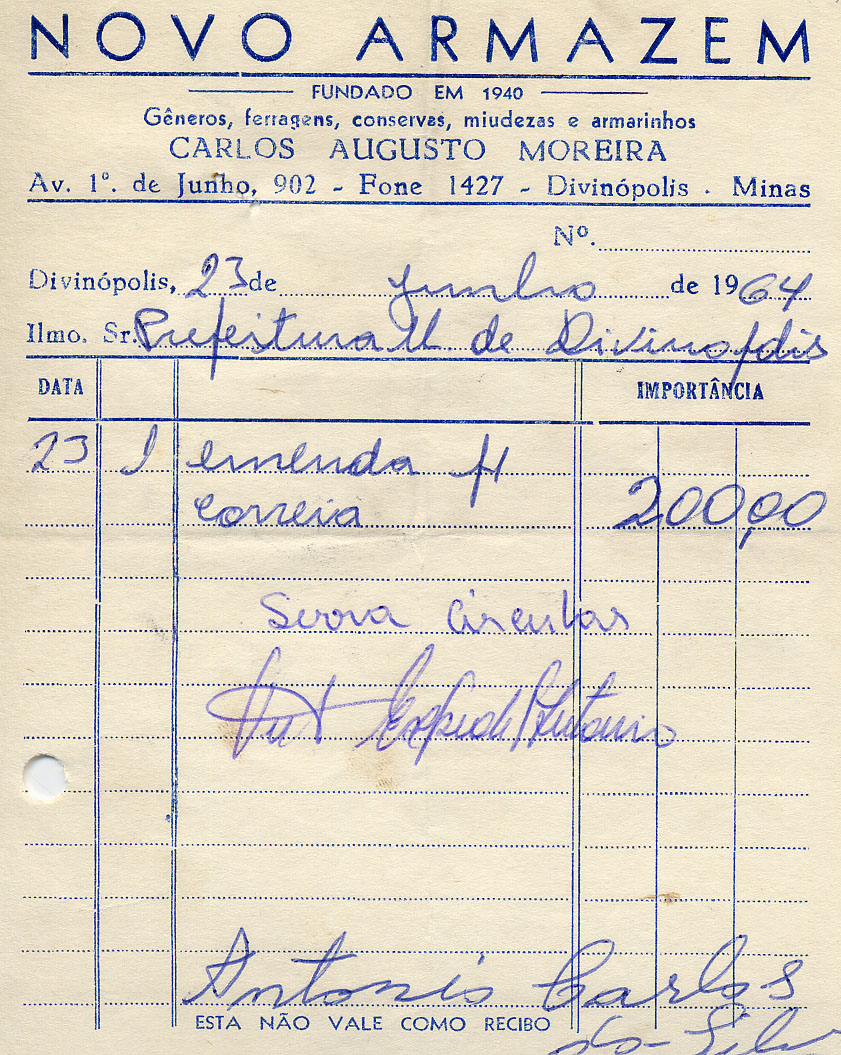 PREFEITURA MUNICIPAL DE DIVINÓPOLIS, 21 DE SETEMBRO DE 1964.