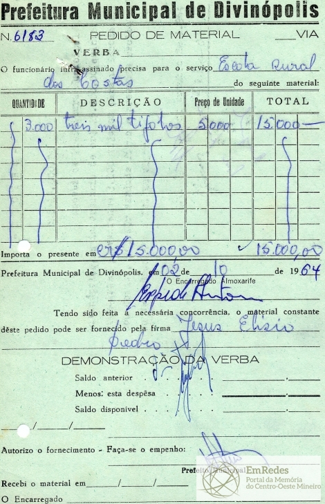 PREFEITURA MUNICIPAL DE DIVINÓPOLIS, 09 DE OUTUBRO DE 1964.