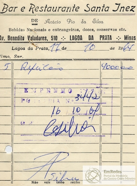 PREFEITURA MUNICIPAL DE DIVINÓPOLIS, 16 DE OUTUBRO DE 1964.