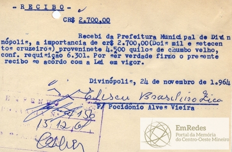 PREFEITURA MUNICIPAL DE DIVINÓPOLIS, 15 DE DEZEMBRO DE 1964.