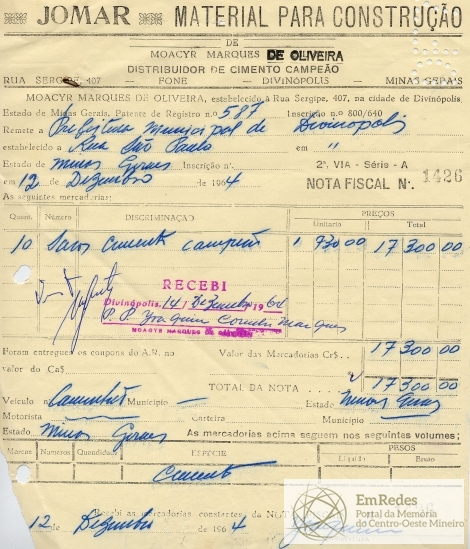 PREFEITURA MUNICIPAL DE DIVINÓPOLIS, 17 DE DEZEMBRO DE 1964.