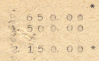 RECEBI DO SR. CHEFE DO SERVIÇO DE FAZENDA A IMPORTÂNCIA SUPRA DE DOIS MIL, CENTO E CINQUENTA CRUZEIROS DA QUAL PASSO O PRESENTE RECIBO EM TRIPLICATA.