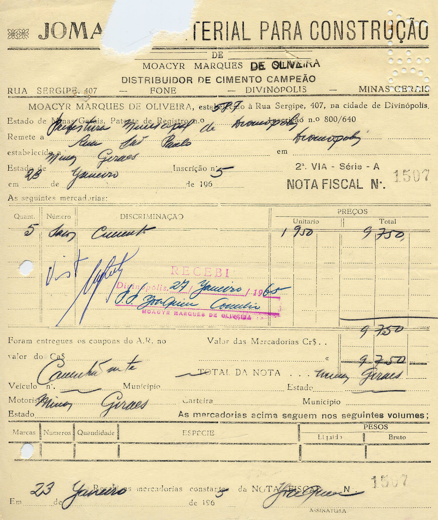 FICA O SR. CHEFE DO SERVIÇO DE FAZENDA AUTORIZADO A PAGAR AO SR.MOACIR MARQUES DE OLIVEIRA A QUANTIA DE NOVE MIL, SETECENTOS E CINQUENTA CRUZEIROS PROVENIENTE DE FORNECIMENTO DE CIMENTO.