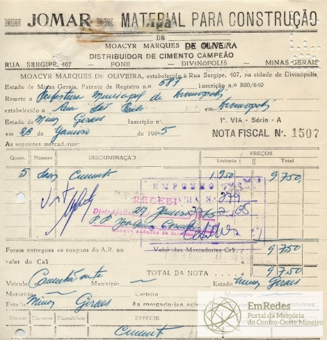 PREFEITURA MUNICIPAL DE DIVINÓPOLIS, 22 DE FEVEREIRO DE 1965.