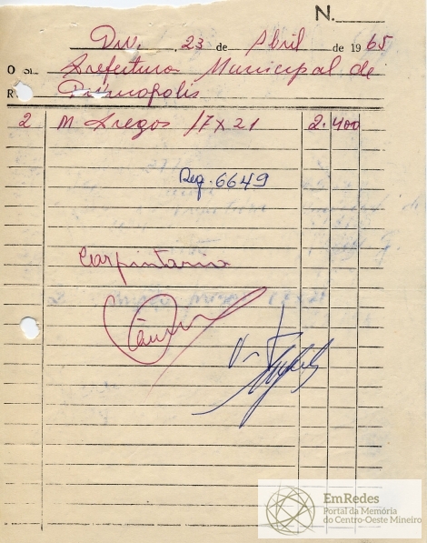 PREFEITURA MUNICIPAL DE DIVINÓPOLIS, 25 DE FEVEREIRO DE 1965.