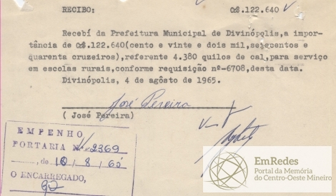 PREFEITURA MUNICIPAL DE DIVINÓPOLIS, 10 DE AGOSTO DE 1965.