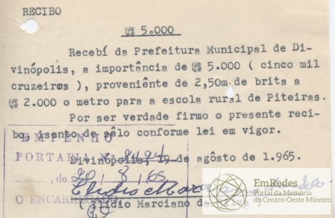 PREFEITURA MUNICIPAL DE DIVINÓPOLIS, 20 DE AGOSTO DE 1965.